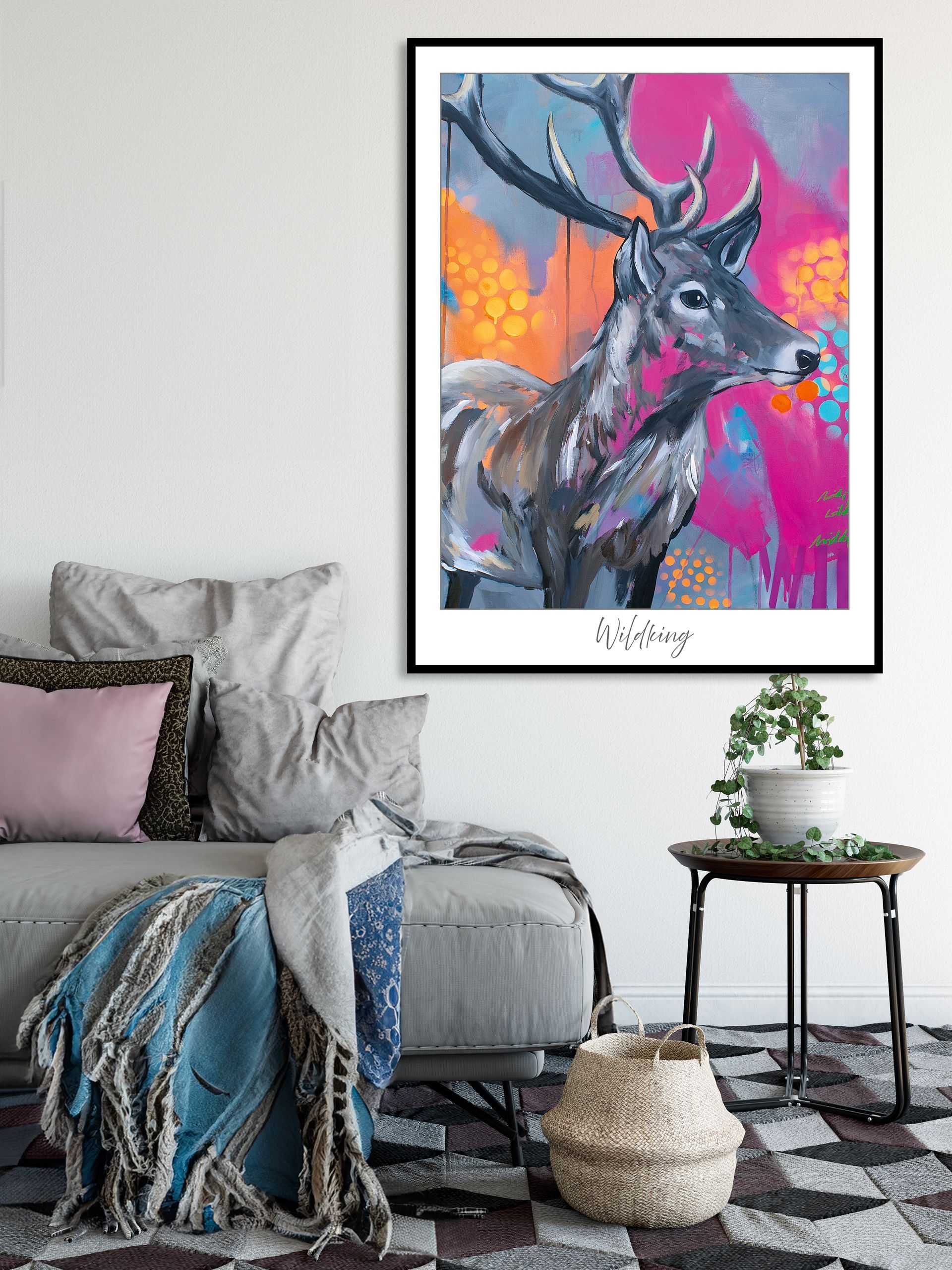 Jetzt gibt es exklusiv das Bild "Wildking" also Kunstdruck. Das Poster zeigt einen Ausschnitt des beliebten Originalgemäldes. Mit seiner dynamischen und kraftvollen Umsetzung ist das Bild eine perfekte Grundlage für diesen modernen und farbenfrohen Druck.