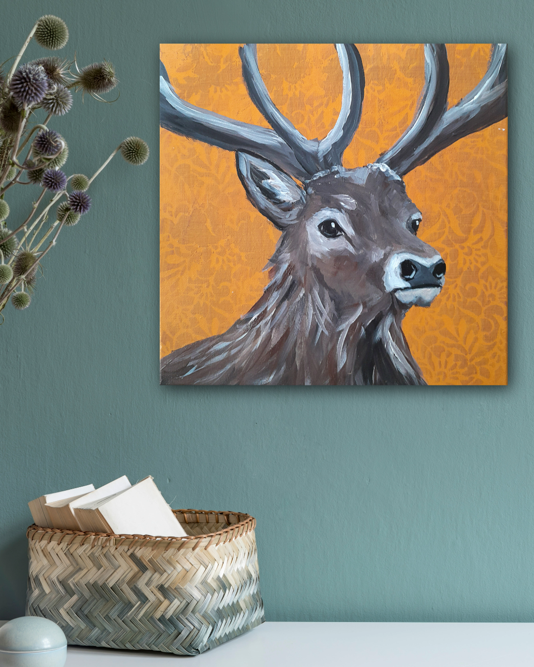 Aus der Serie "Little Friends" ist dieser neue Rothirsch entstanden. Das kleine Format von 30 x 30 cm ist ein perfektes Geschenk für alle Natur- und Waldliebhaber.