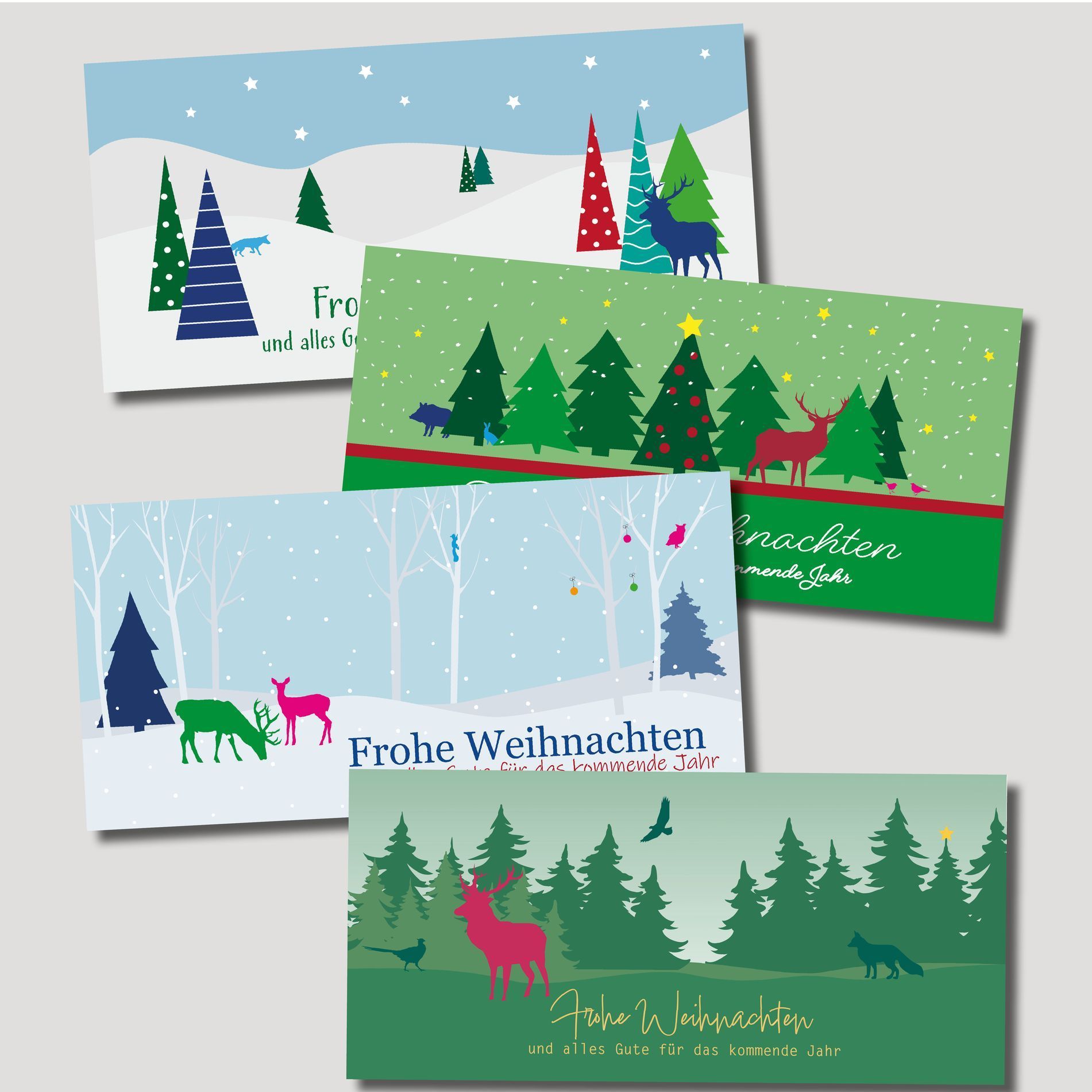 12 liebevoll gemalte Kunstwerke von Fuchs, Hirsch, Hase, Reh, Frosch, Dachs und weiteren tollen Tieren.