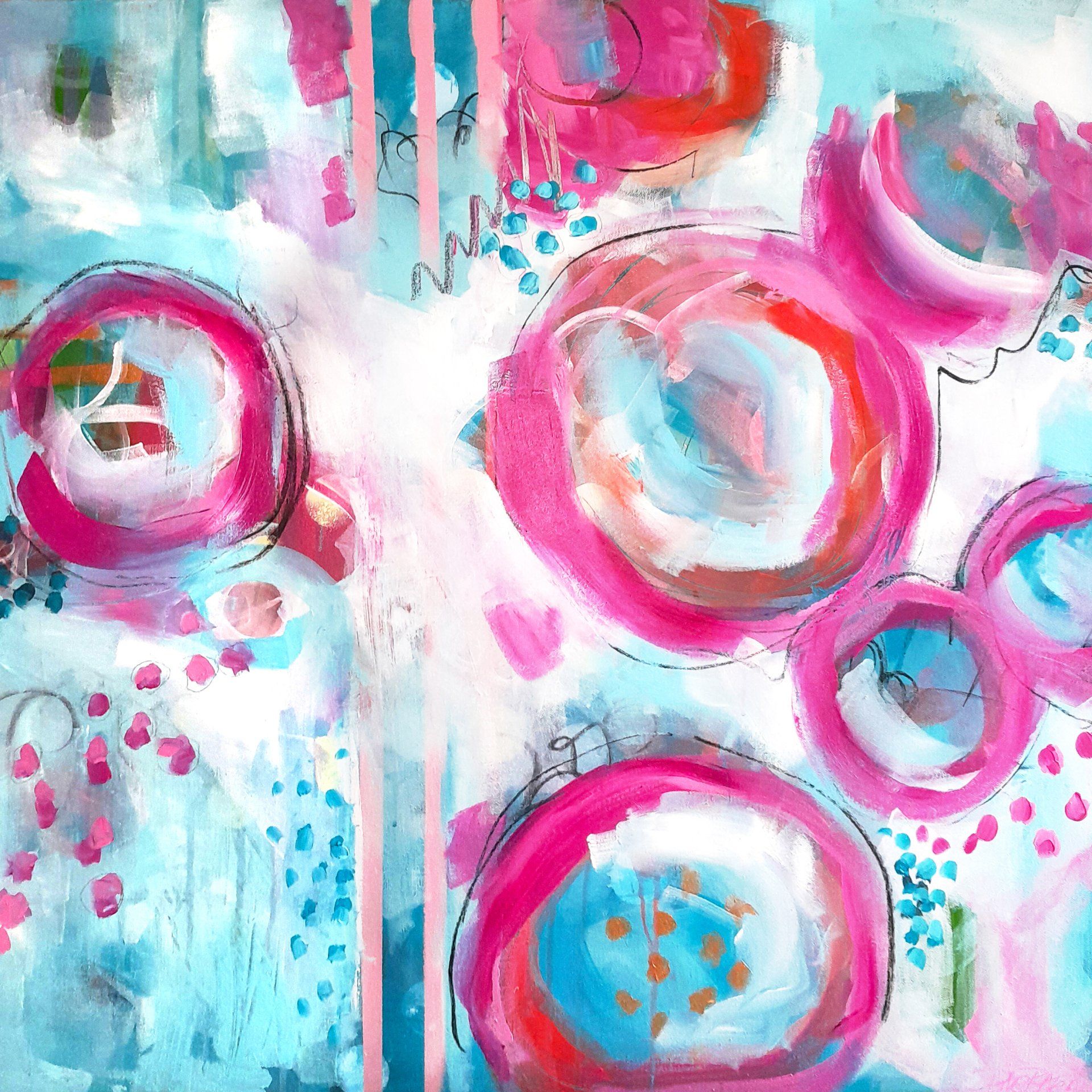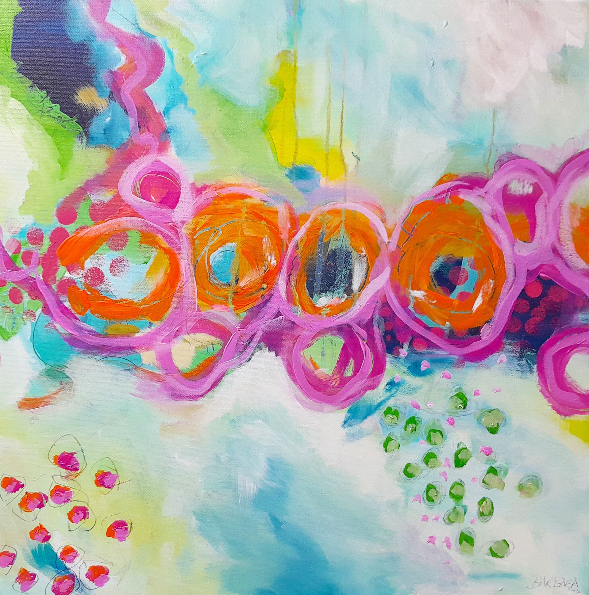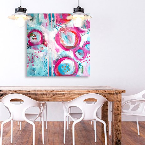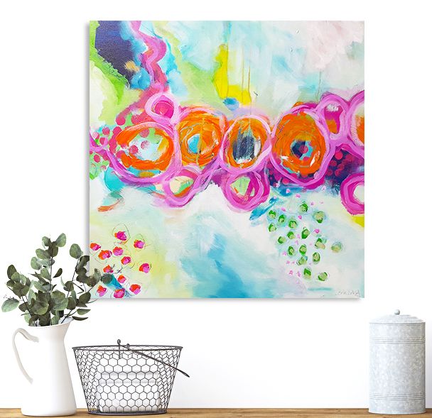 Acryl auf Leinwand mit Keilrahmen aus Holz, Größe: 80 x 80 cm, mit einem bemalten Rand von 5 cm