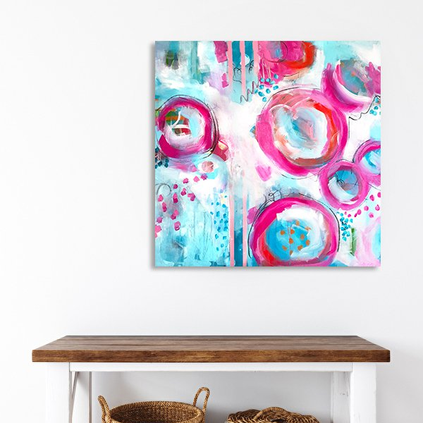 Acryl auf Leinwand mit Keilrahmen aus Holz, Größe: 50 x 50 cm, mit einem bemalten Rand von 5 cm