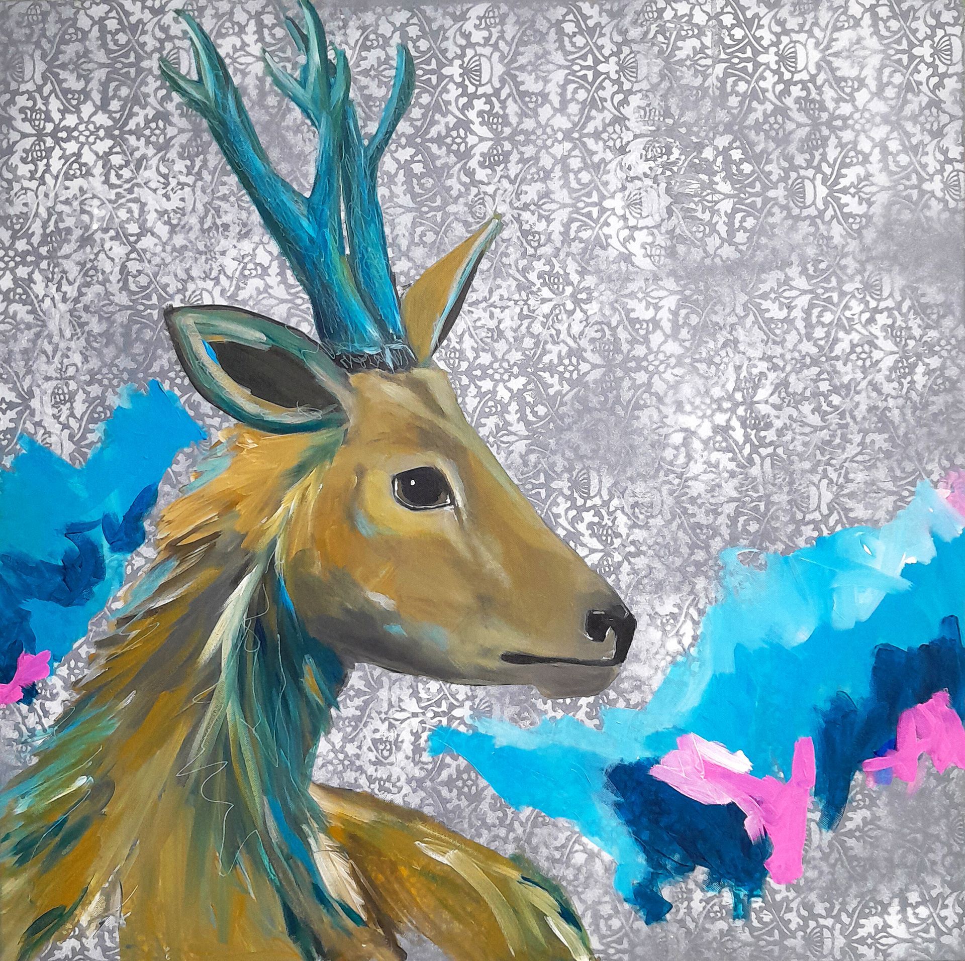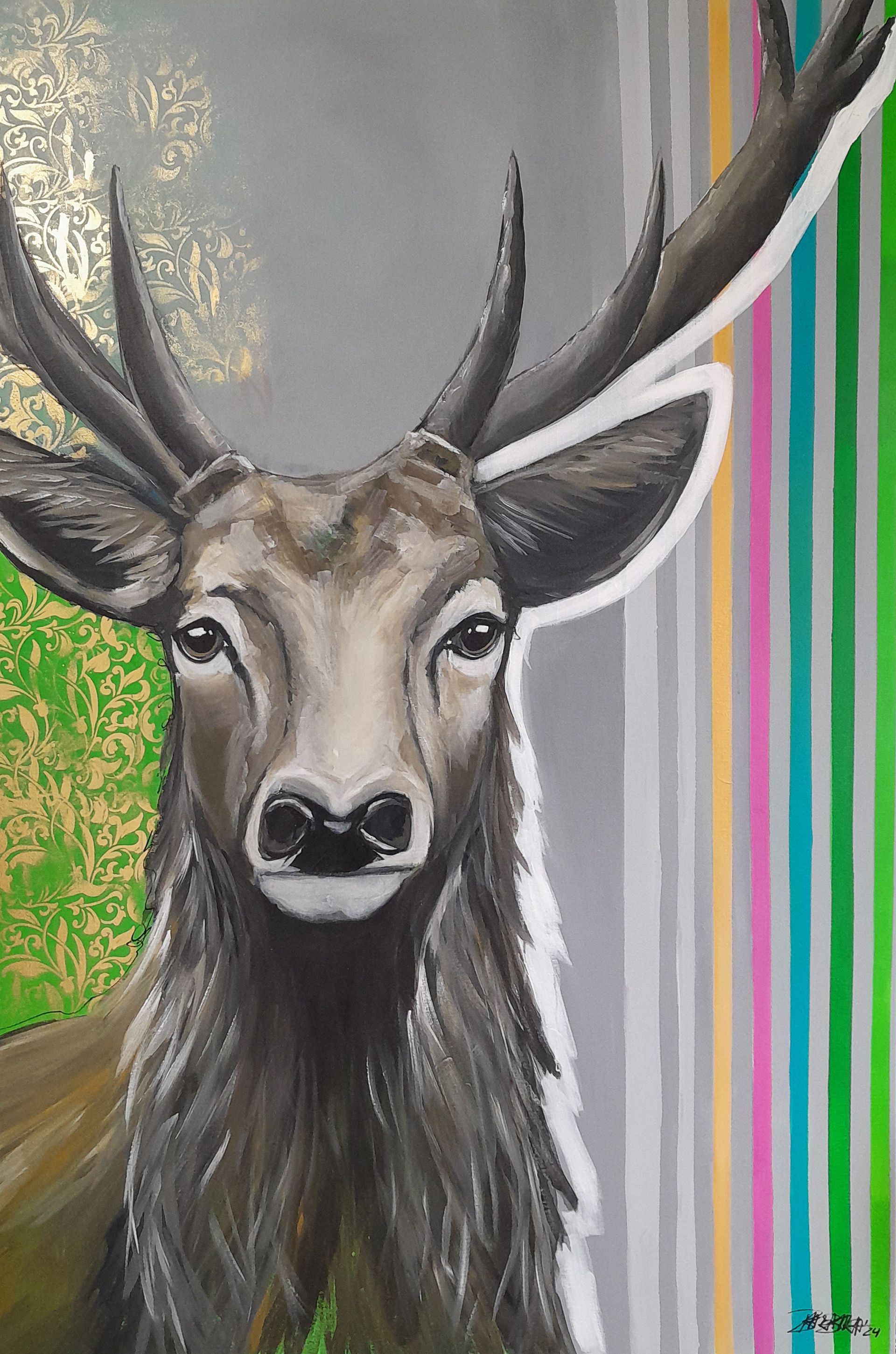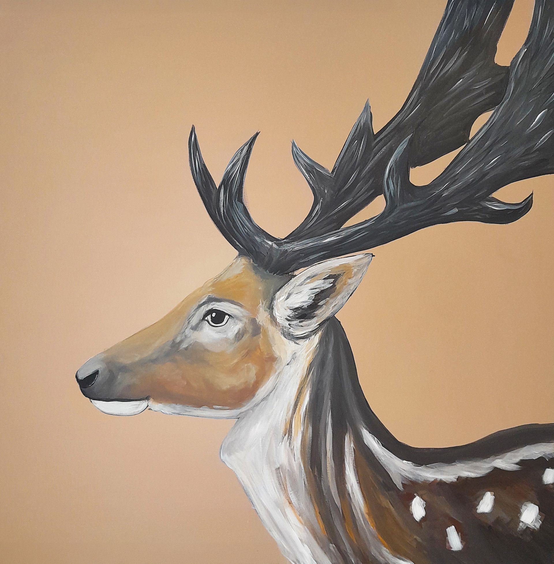 Jedes Tier ist einzigartig und wunderschön. Rothirsche sind unsere größten freilebenden Wildtier und sehr imposant. Der kleinere Dammhirsch steht diesem aber nicht nach und wie jedes Tier, ob groß oder klein, hat es seinen ganz eigenen Ausdruck und Reiz. Diese Bild hat einen cremefarbenden Hintergrund mit einem leichten Goldschimmer. Diese Kombination gibt dem Bild eine elegante und warme Note. Die Reduktion des Hintergrund hebt das Motiv eindrucksvoll hervor. Der Hirsch ist dabei mit leichten abstrakten Elementen dargestellt und kombiniert so eine moderne und traditionelle Darstellung.