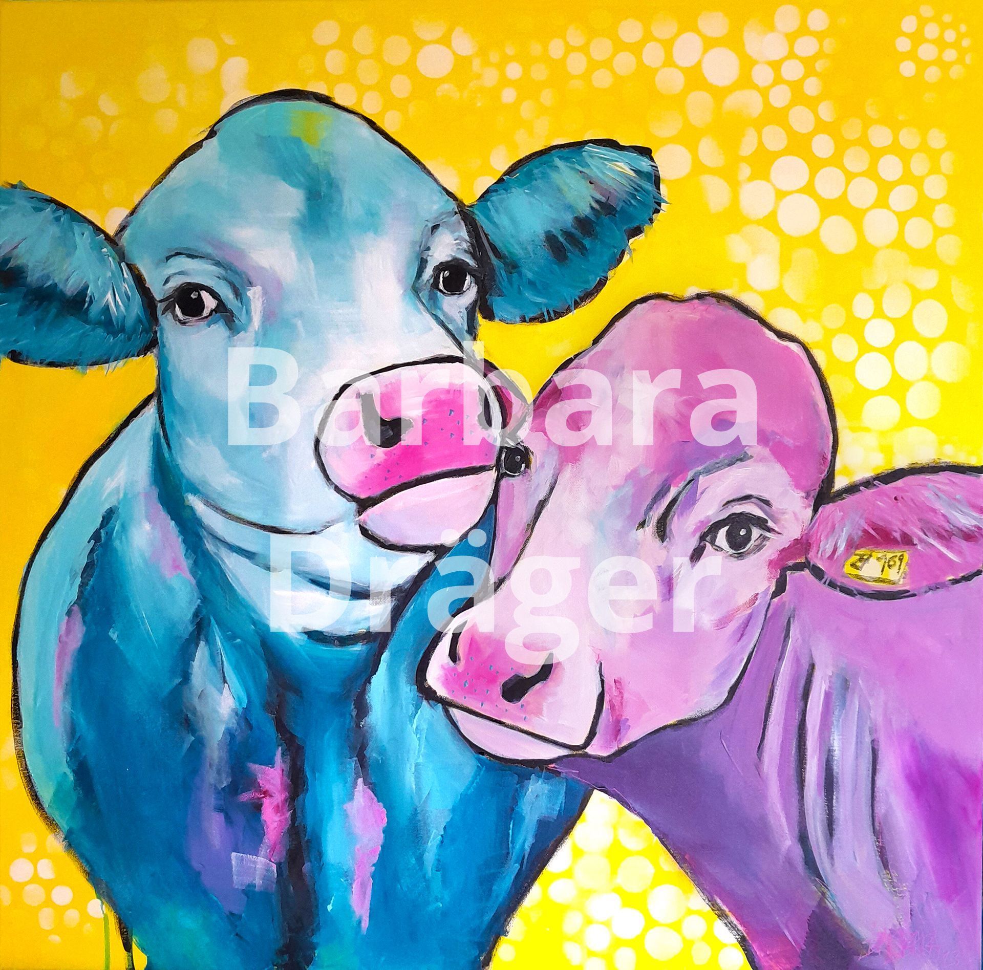 In meiner Arbeit fange ich die Essenz und Persönlichkeit der Natur ein, indem ich kühne, lebendige Farben mit einer spielerischen Lebendigkeit kombiniere. Diese Kuhporträts, gemalt in Acryl im abstrakt-figurativen Stil, spiegeln tiefe Gefühle und einen Hauch von Unschuld wider. Die starken Kontraste und die fröhliche Atmosphäre sollen eine Beziehung zwischen den Betrachtenden und der natürlichen Welt fördern. Es ist ein Stück, das Frische und Lebensfreude in jeden Raum bringt