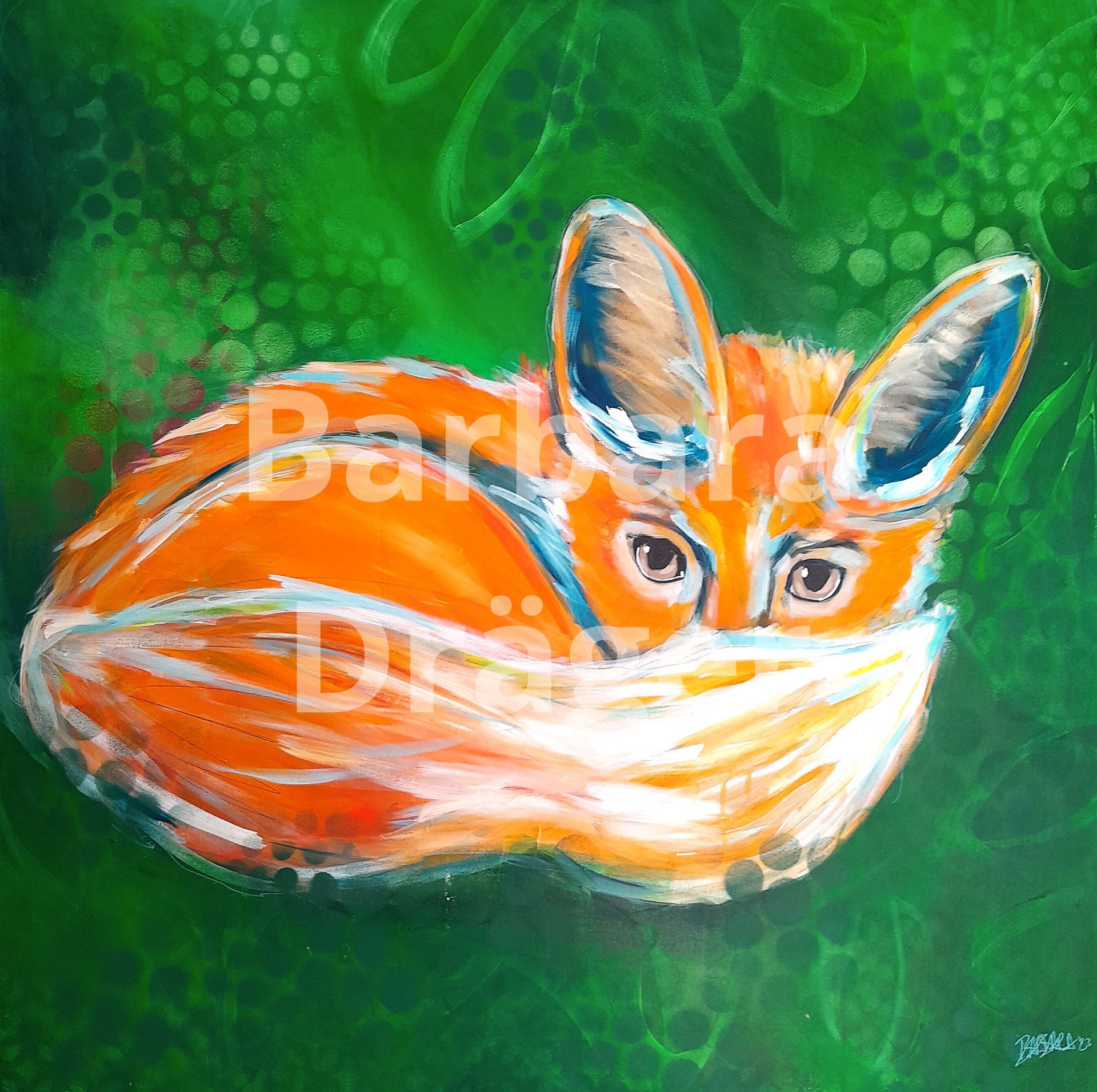 Maße: 1 x 1 m. Der Rand ist ca. 5 cm breit und in den Farben des Bildes bemalt (siehe Fotos).